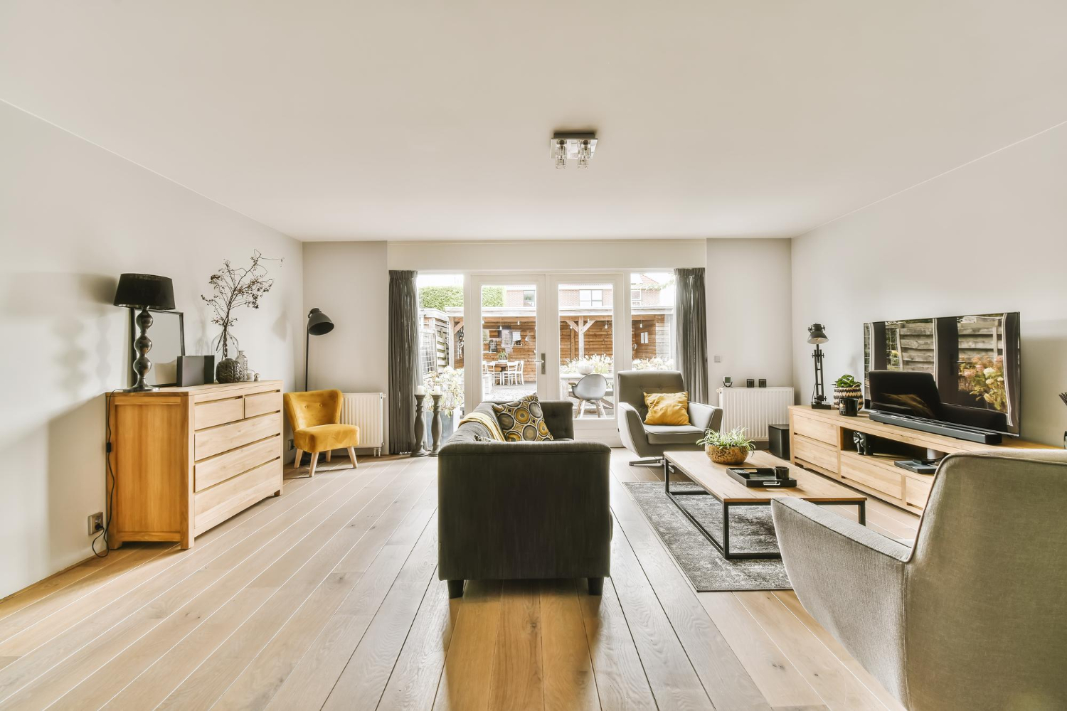 Open-concept living and dining area